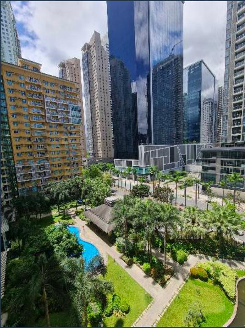 facing garden with pool and also bgc skyline