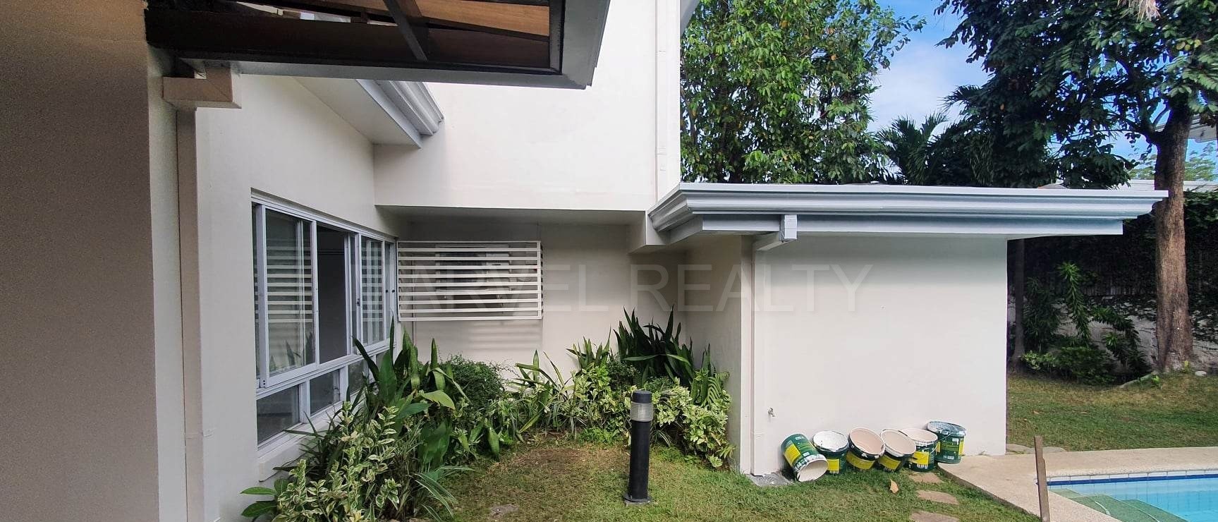 With swimming pool and garden
